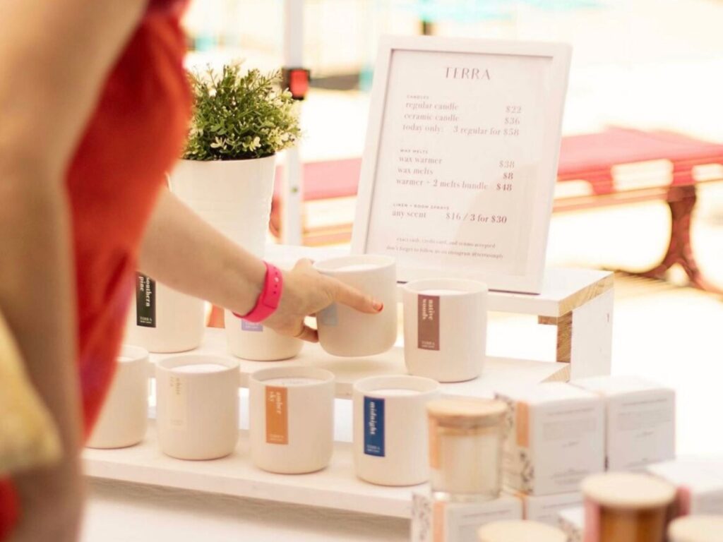 Majority of farmer’s markets and pop-ups happen outside during summer. Are your products resistant to heat? If not, ensure that your tent provides shade over your products during the whole event. Setting up your tables in the middle of your space, rather than the edges can help with this.
